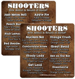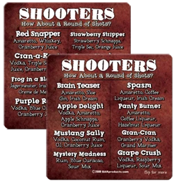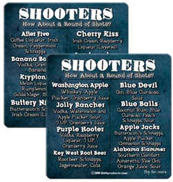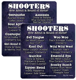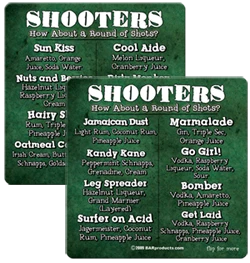 These quality Shooter Recipe Coasters are the perfect way to bring a lot more liquor sales to your bar. With a variety of different types of shooter recipes in each pack ranging from fruity.. to sweet.. to tangy, anyone in your venue is sure to find a shooter that just right. Is there any better way than to put these appetizing shooter recipes on a set of coasters?