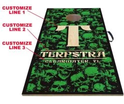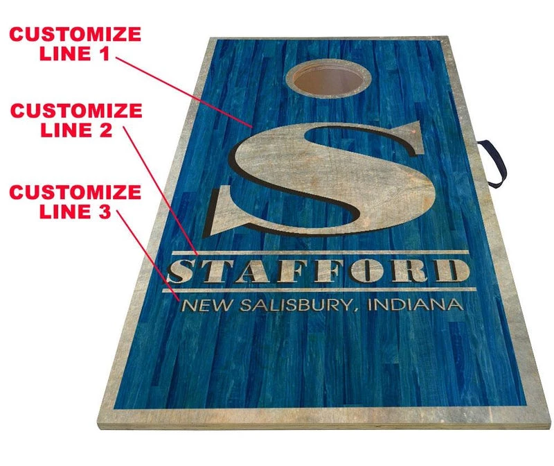 These customizable Cornhole boards are perfect for backyard barbeques or trips to the beach! Showcasing a high quality, solid wood construction and convenient packaging solution we are excited to offer you these boards with the ability to customize them with your own info. Industry strength Velcro attaches the base of the board to the frame for convenient transportation and storage, while a comfortable vinyl handle is securely fastened to the edge of the board providing a steady weight distributed carrying aide.
