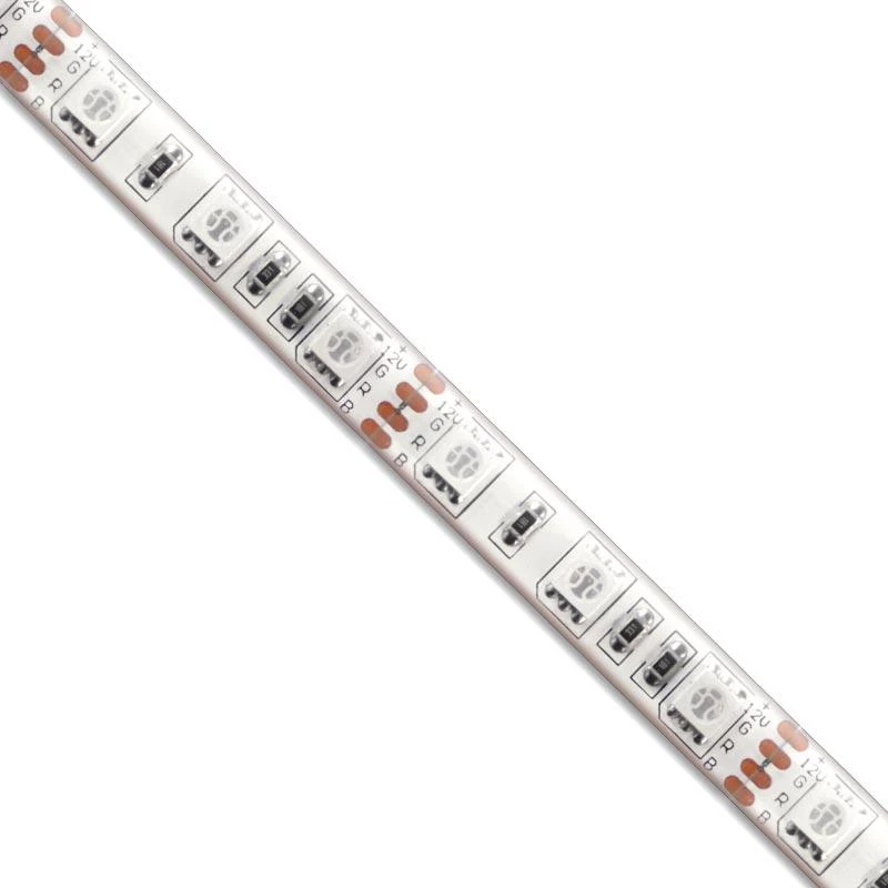 The LED lights are SMD 5050 (meaning 5mm x 5mm chips) which produce the brightest lights found in LED strips. This 16.4 foot (5 meter) roll features 18 LEDs per foot.