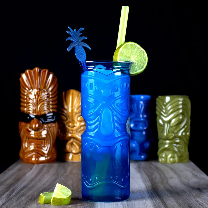This fun tiki cup is the perfect cup to make your colorfully tropical drinks in. These cups are made of high quality durable plastic material that wont easily break and they feature an embossed tiki face design showcasing a slightly transparent blue color. This cup is 8 1/2 inches in height with a 3.25 inch diameter and can hold 32oz of liquid.ย The tiki mixology trend is showing no signs of slowing down and we feel it is here to stay. Stock up on these great reusable tiki cups and enjoy one of the best movements in modern mixology.ย