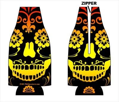 The Pretty Skull Bottle cooler is our take on the sugar skull design. The fiery design will keep your beverage looking good, plus it will stay colder longer. The zipper on the side makes it easy and convenient to replace bottles quickly.